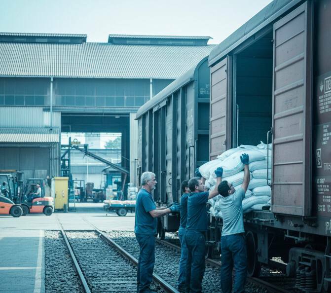 • Железнодорожный транспорт — оптимально для крупных партий оптом.